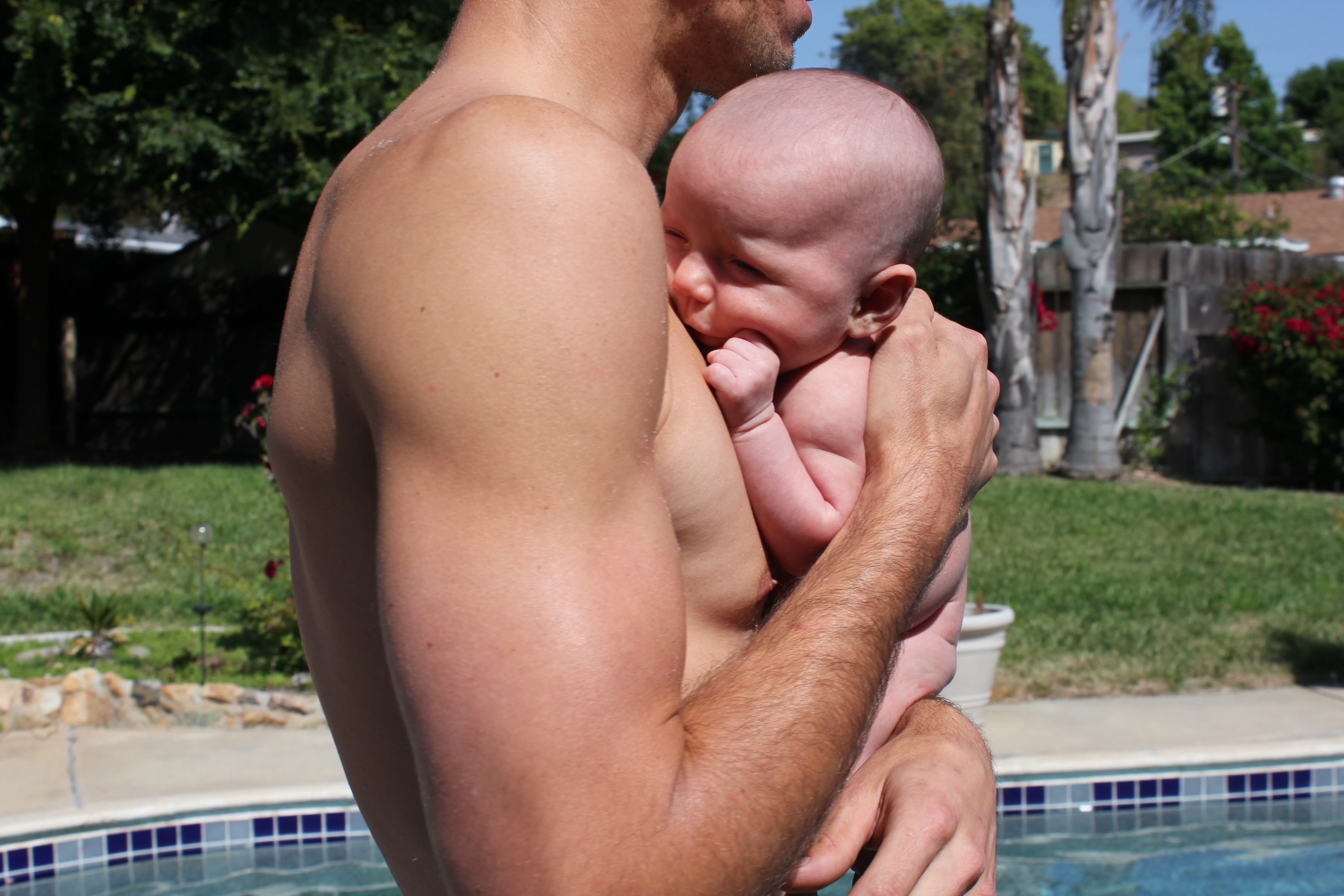 To continue with our family love of the water, you had your first dip in the swimming pool at your Uncle Danny and Aunt Katie’s house. This was the first time you were in cool water and you weren’t fond of it. The second time you got in you had some fun on the pool raft in the afternoon sun. I imagine that as you get older, you will beg us for trips to their house to play. We need to make better friends with their owl though, because apparently he pecked you in the knee and you didn’t like it. Just wait until you get a little older, I think you’ll peck him right back.
