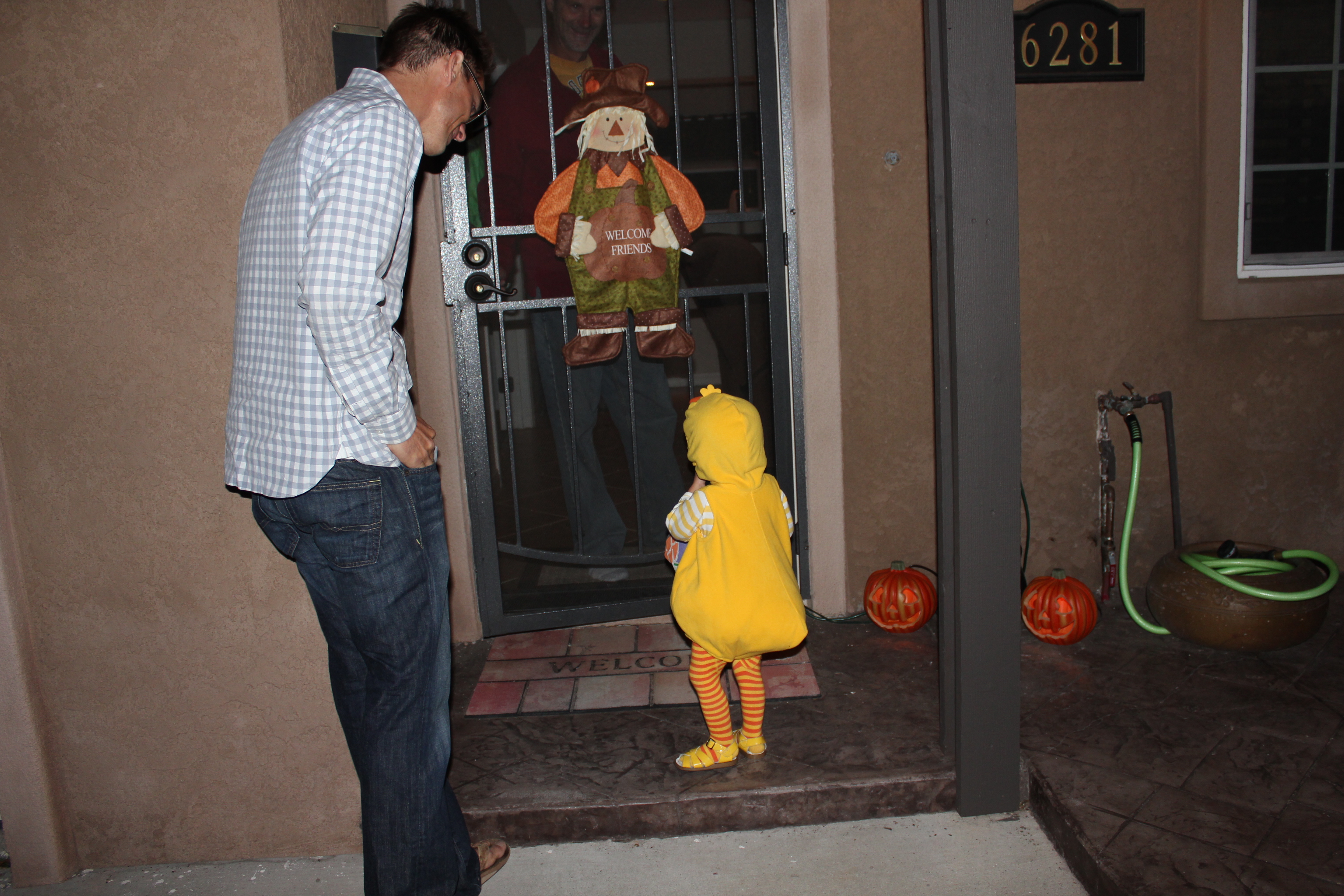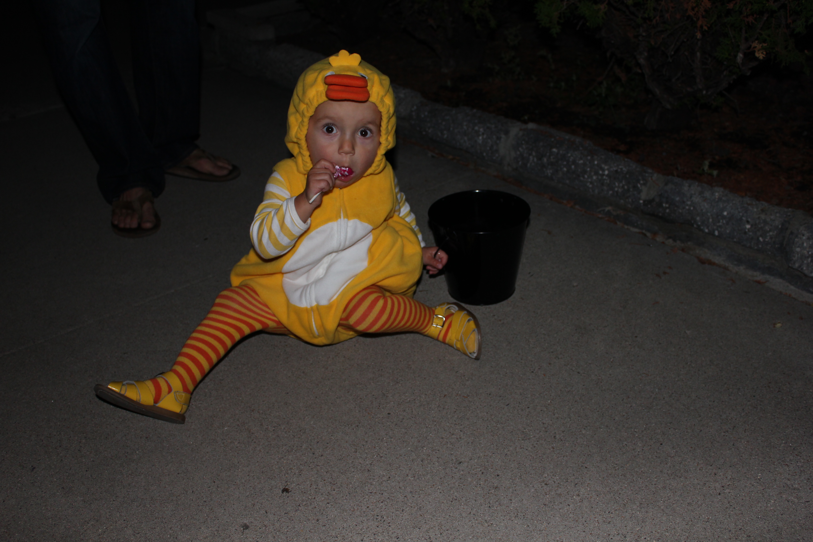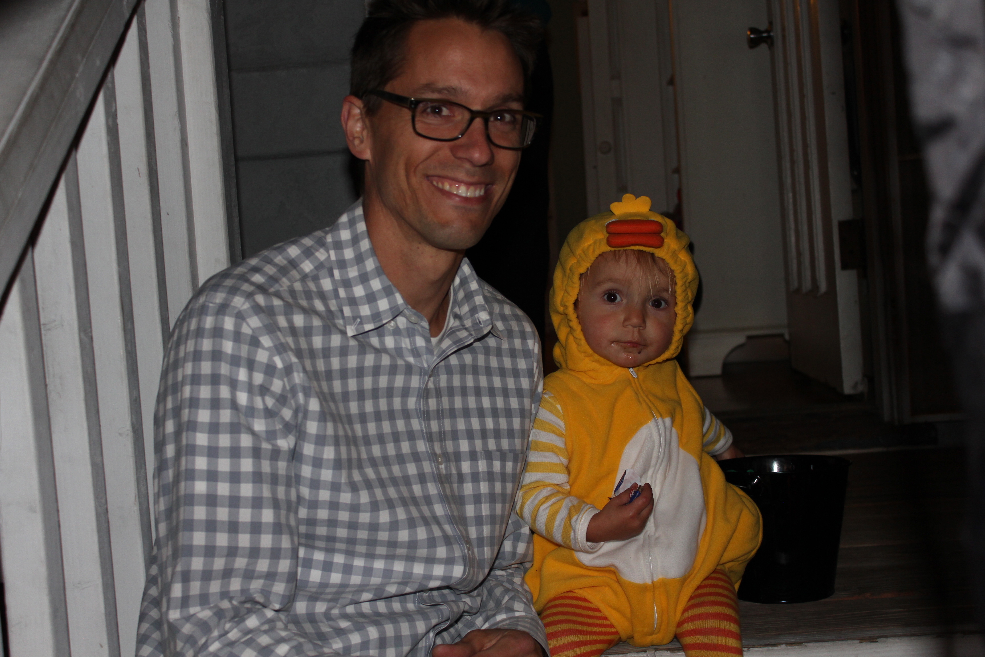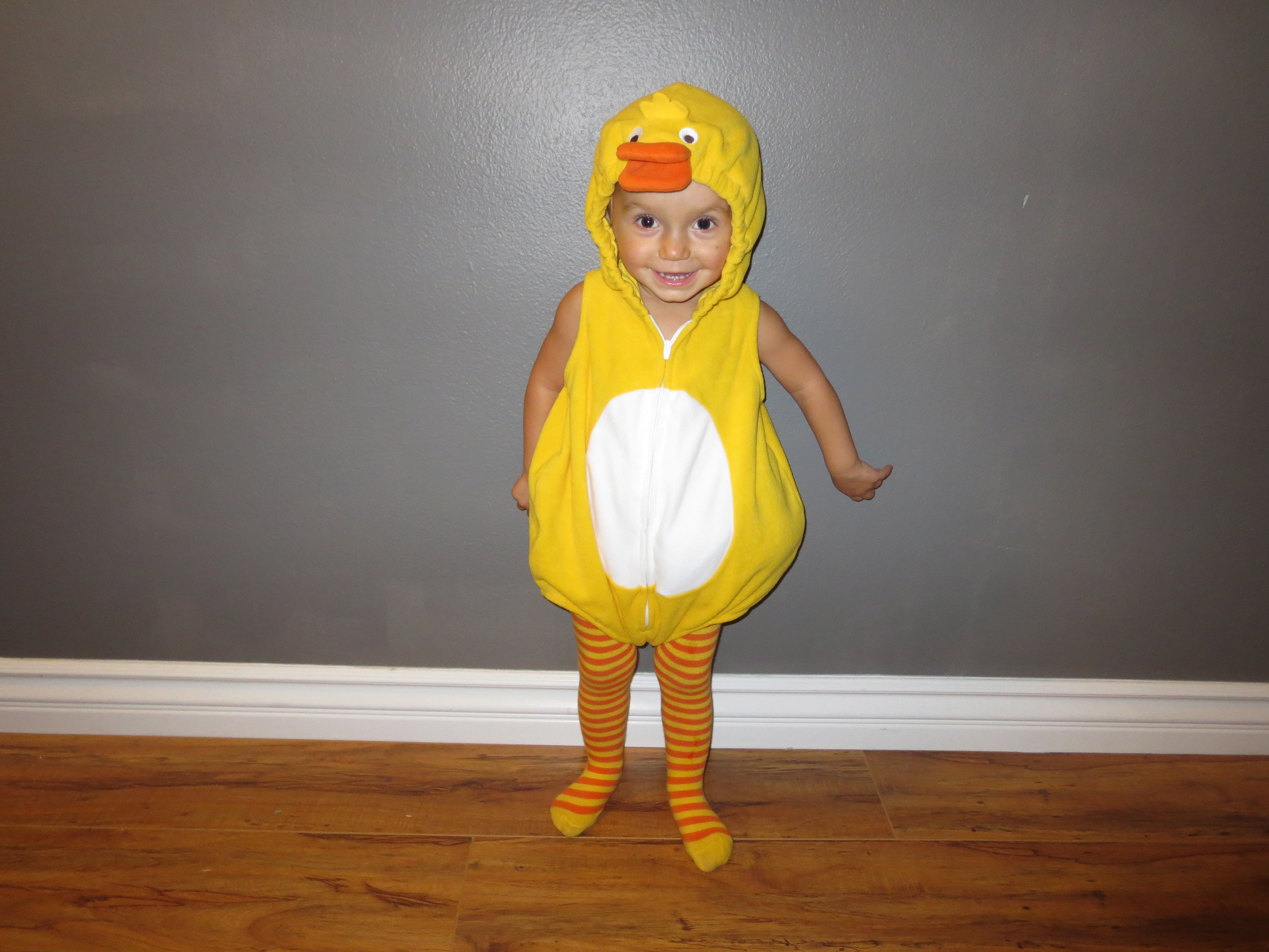 The end of your 18th month was also Halloween. You were a little duck. We went to Uncle Danny and Aunt Katie’s house and it was hilarious and adorable watching you walk up to people’s doors to trick-or-treat. You worked on your “thank yous” and marched around the neighborhood. When we got back to Danny and Katie’s house you helped give out candy, which I think you enjoyed more than collecting it.