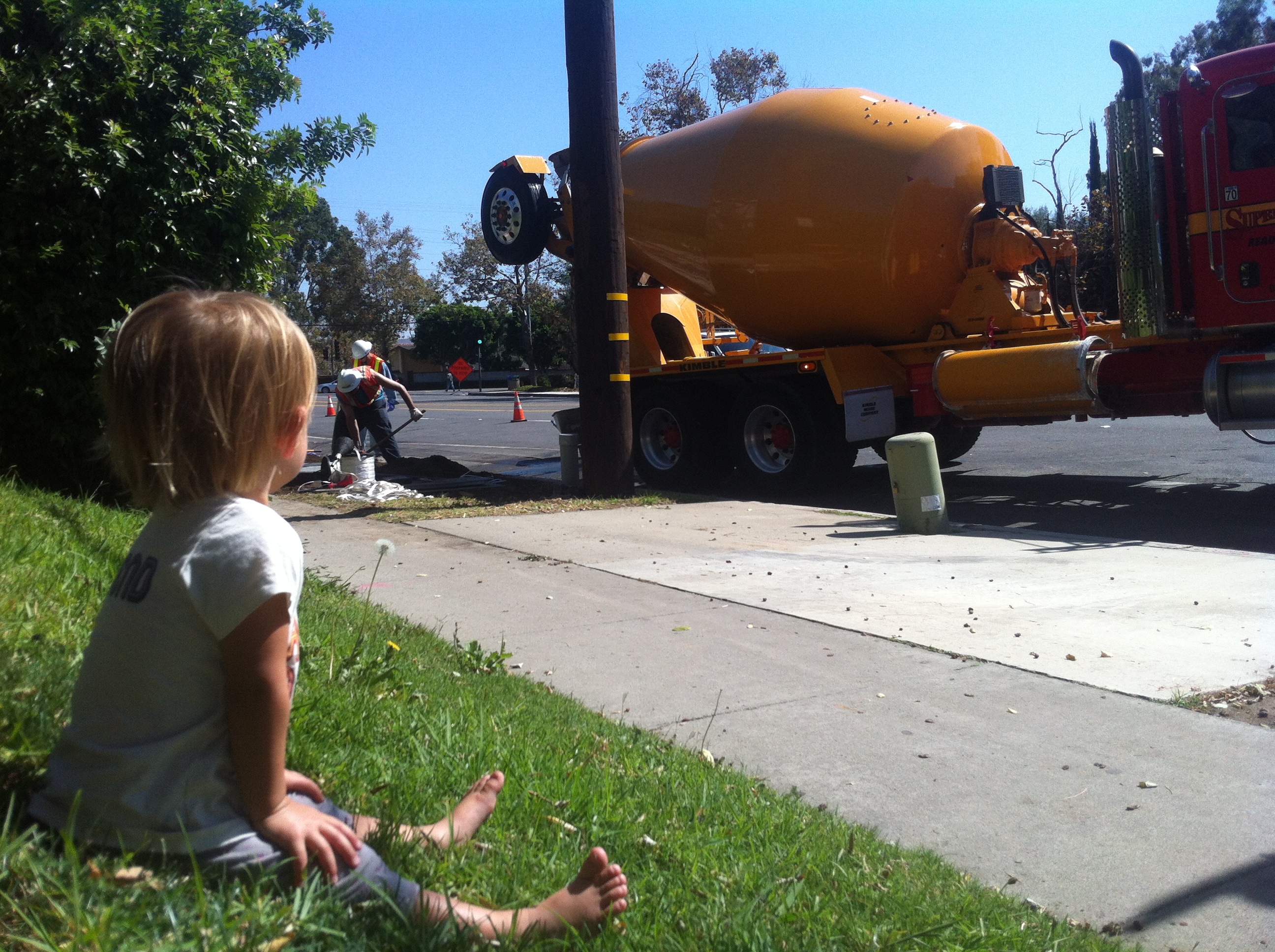 This was a big day. A cement mixer was on our corner so we went to watch it. It’s the same mixer from your Big Truck Book.