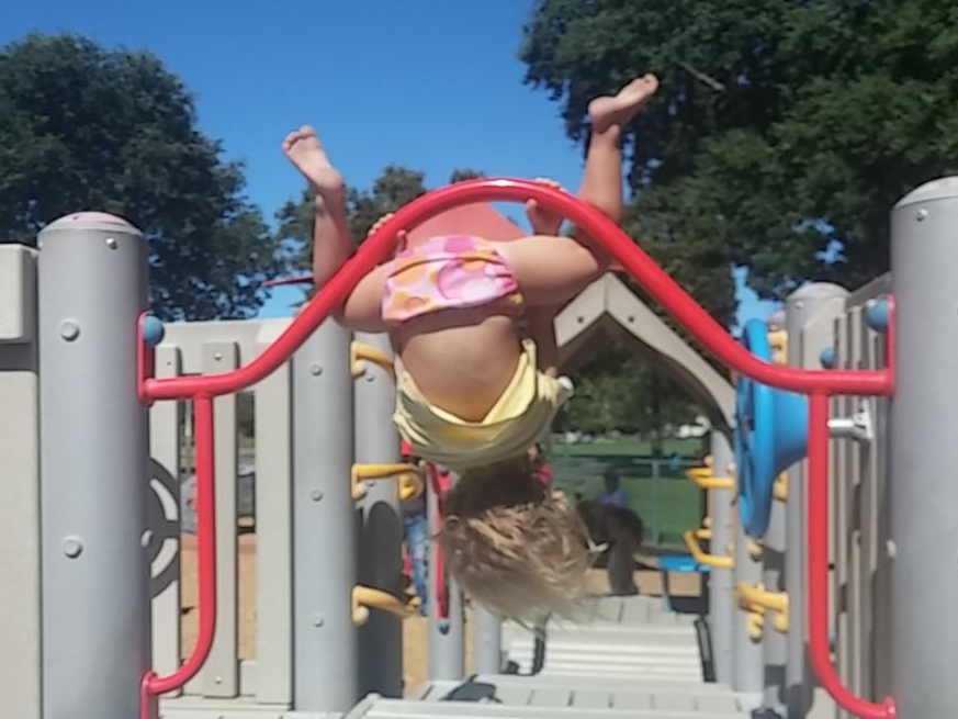 - You are still really into climbing. When we get on the elevator at the gym you walk your feet up the wall and hang upside down from the handrail. People look at me like I am crazy for letting you do it.