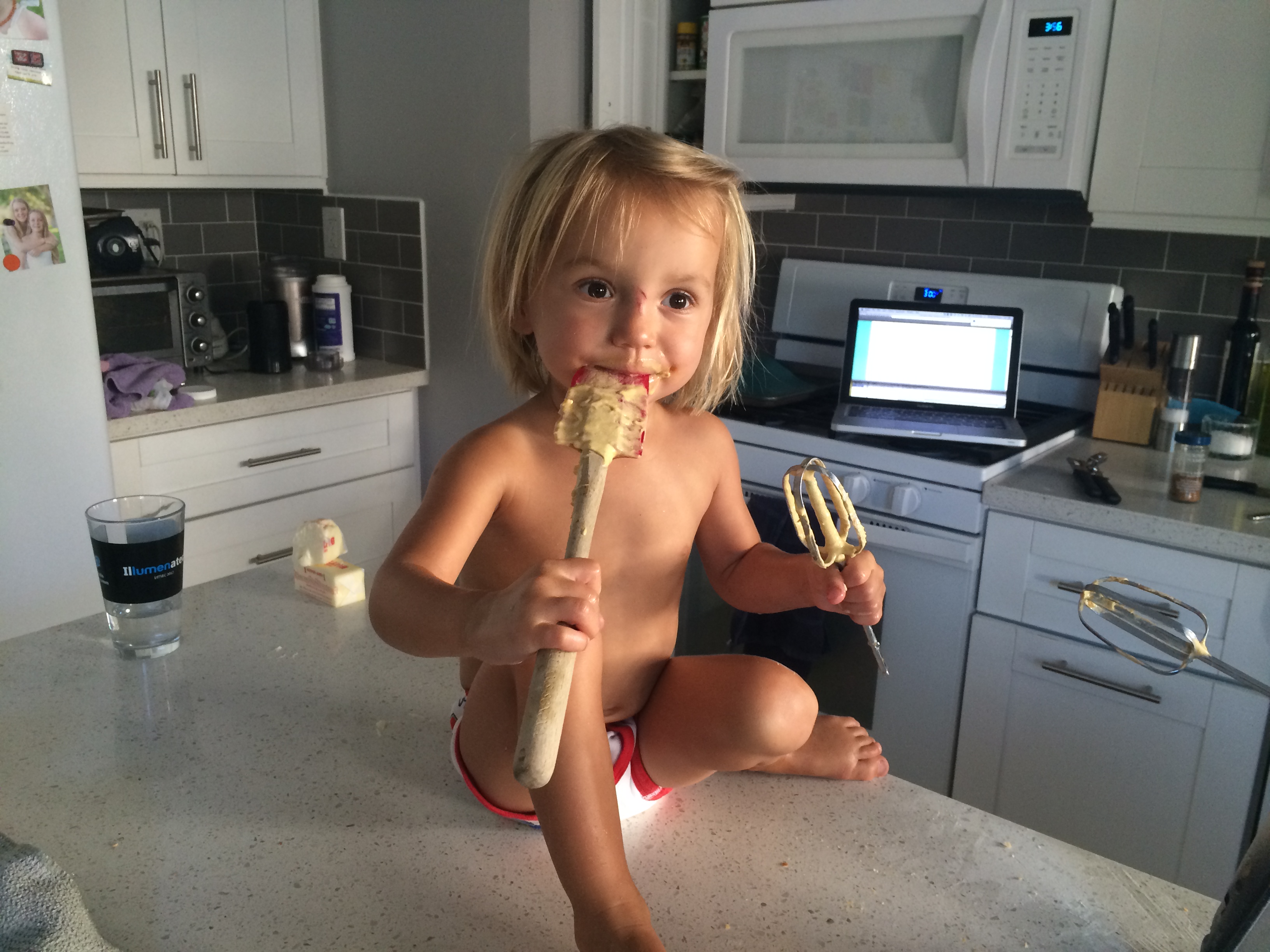 Helping me bake Daddy’s birthday cake.