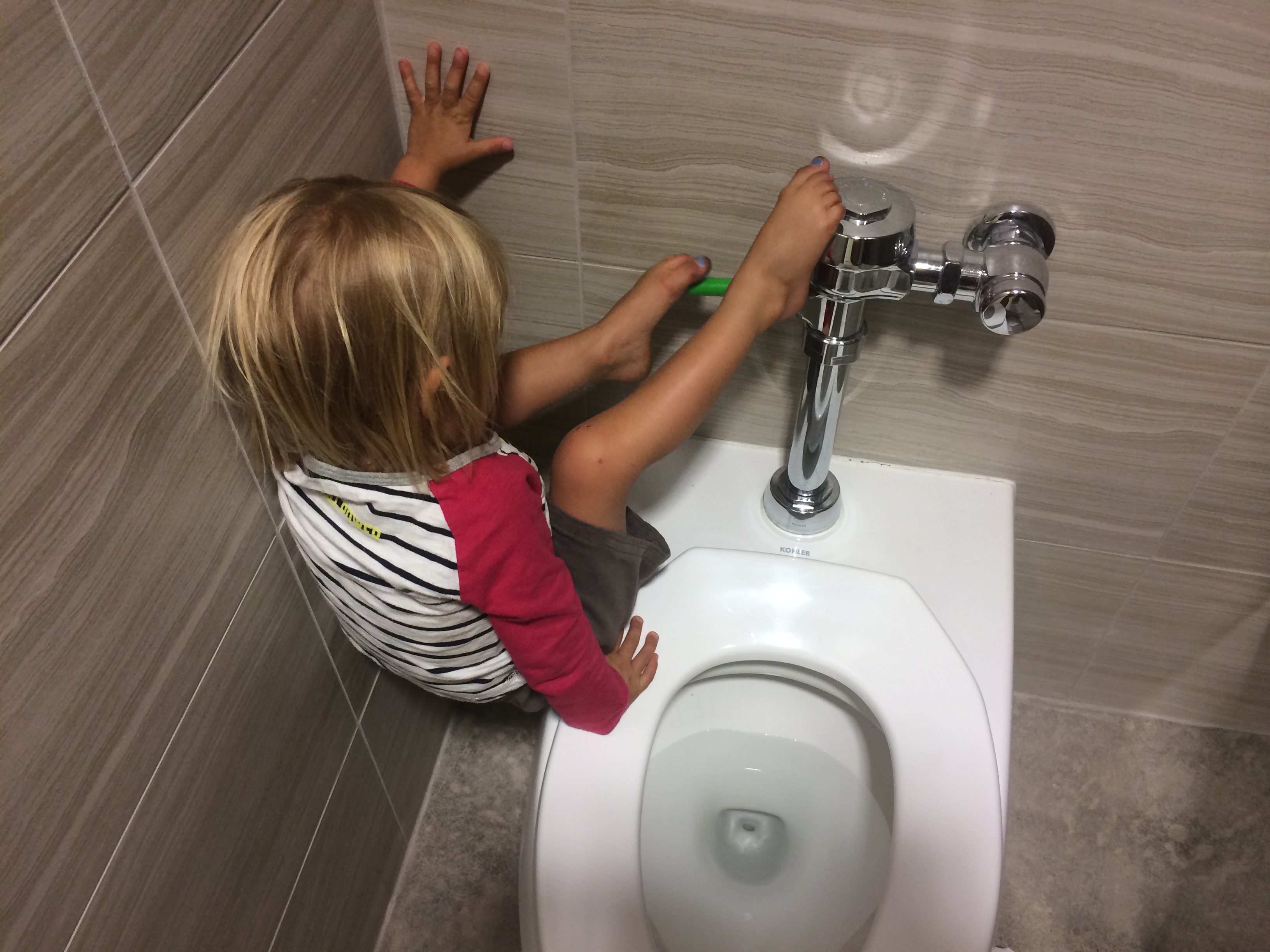You like to flush the toilet with your feet like Mommy. This was in the Bend REI