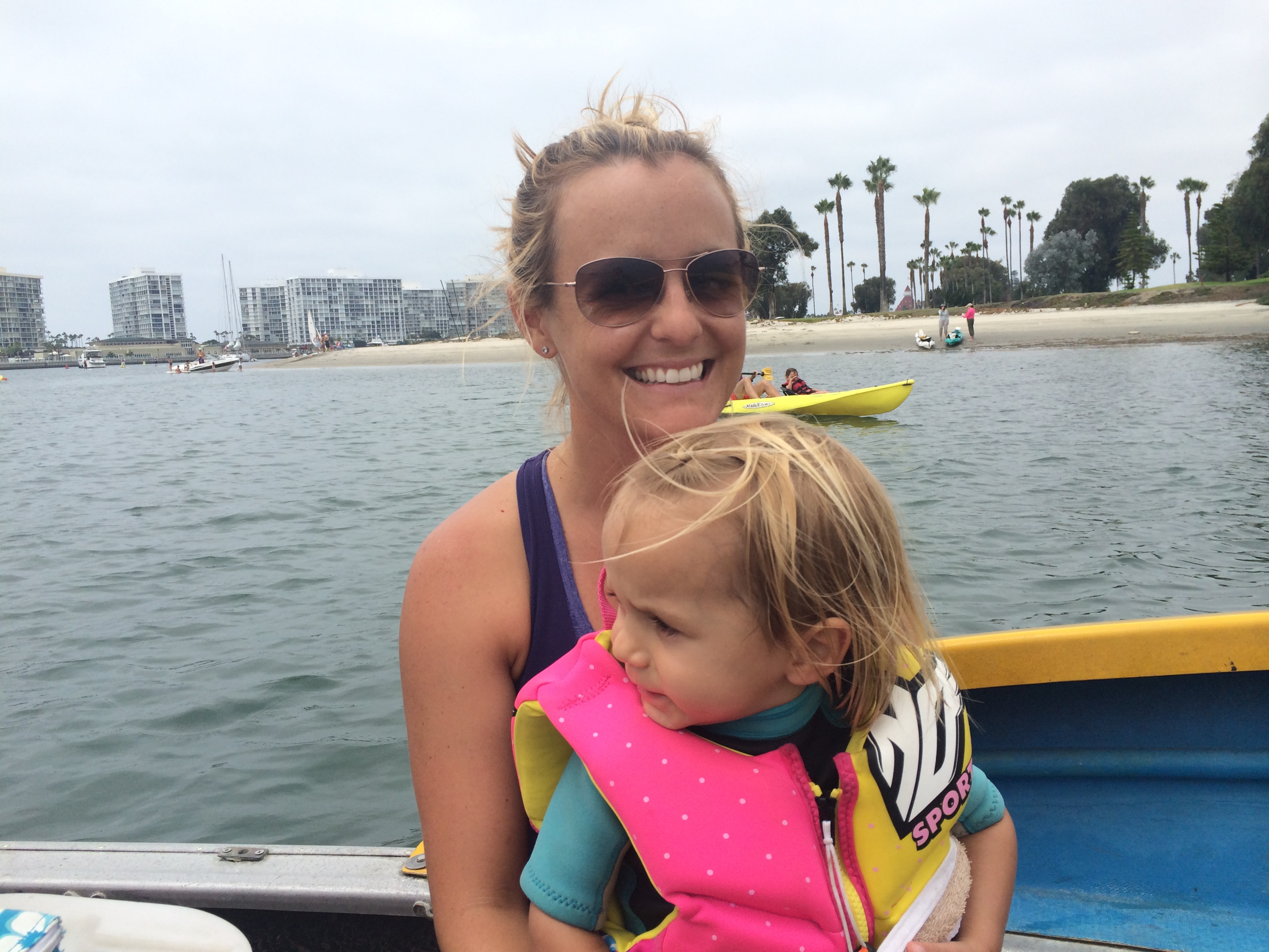 On San Diego bay with Sophie, Katie, Danny, and Daddy. We saw sea lions and Uncle Danny rescued a pelican that was tied up in fishing line!