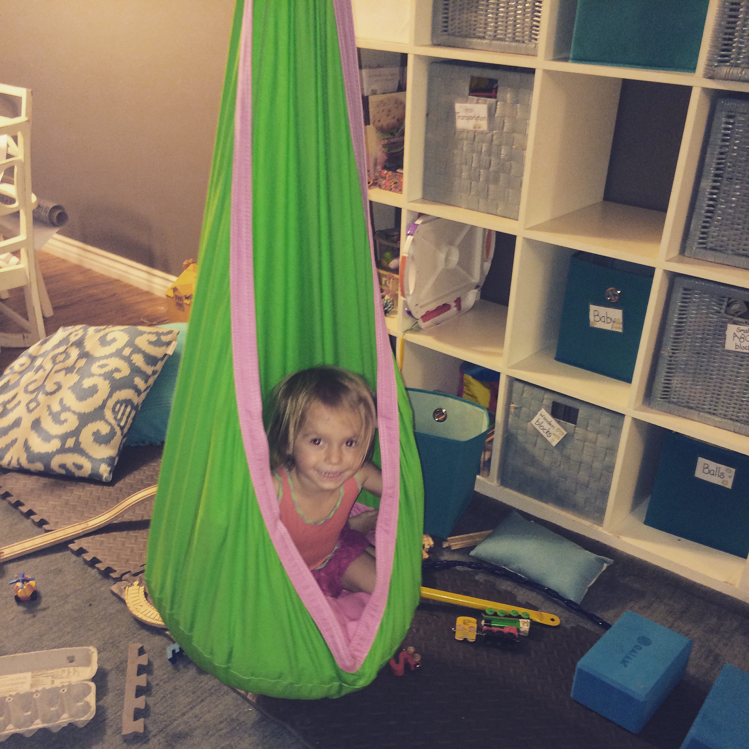 The awesome pod swing Gigi got you for Christmas! Turning our living room/playroom into a swing and climbing area was the best idea ever. We love having a child friendly home that encourages physical play!