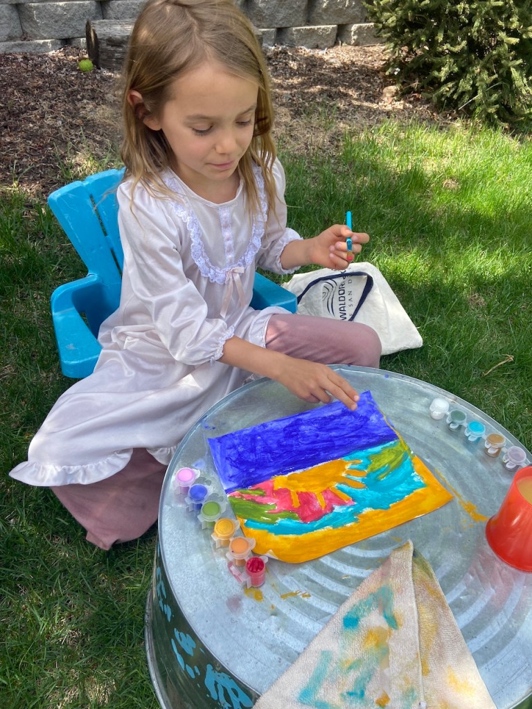 For your birthday this year it was a full weekend party. Friday we had a proper tea party at home with our family and Granny. Saturday Clementine and Henrietta came over and you all participated in an incredible scavenger hunt designed by Daddy. It was super fun. In addition you watched a movie and had popcorn, did arts and crafts, played non-stop and ate lots of yummy food. You designed and planned the entire day from start to finish! Clem spent the night, and went home in the morning after S’more pancakes. Later that day Ari and Miri and their parents came over for cake and playing. We had a great weekend.
